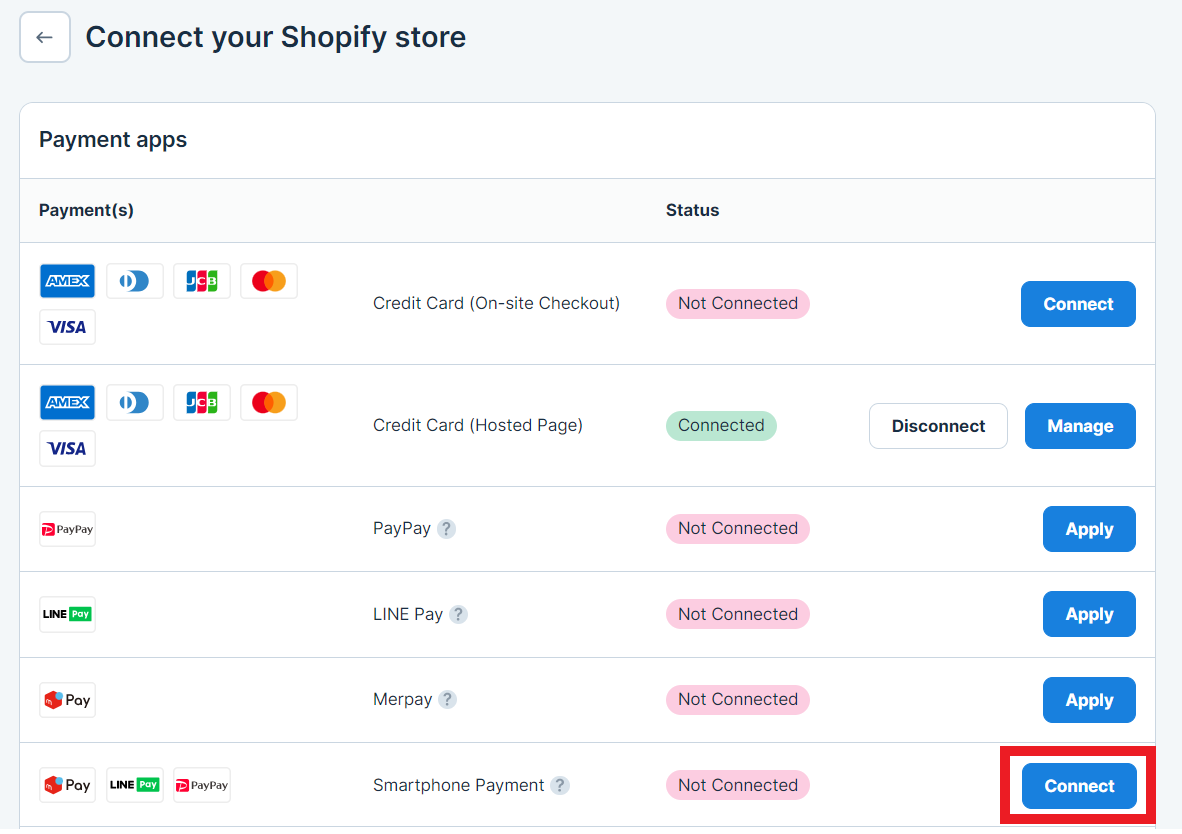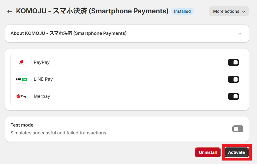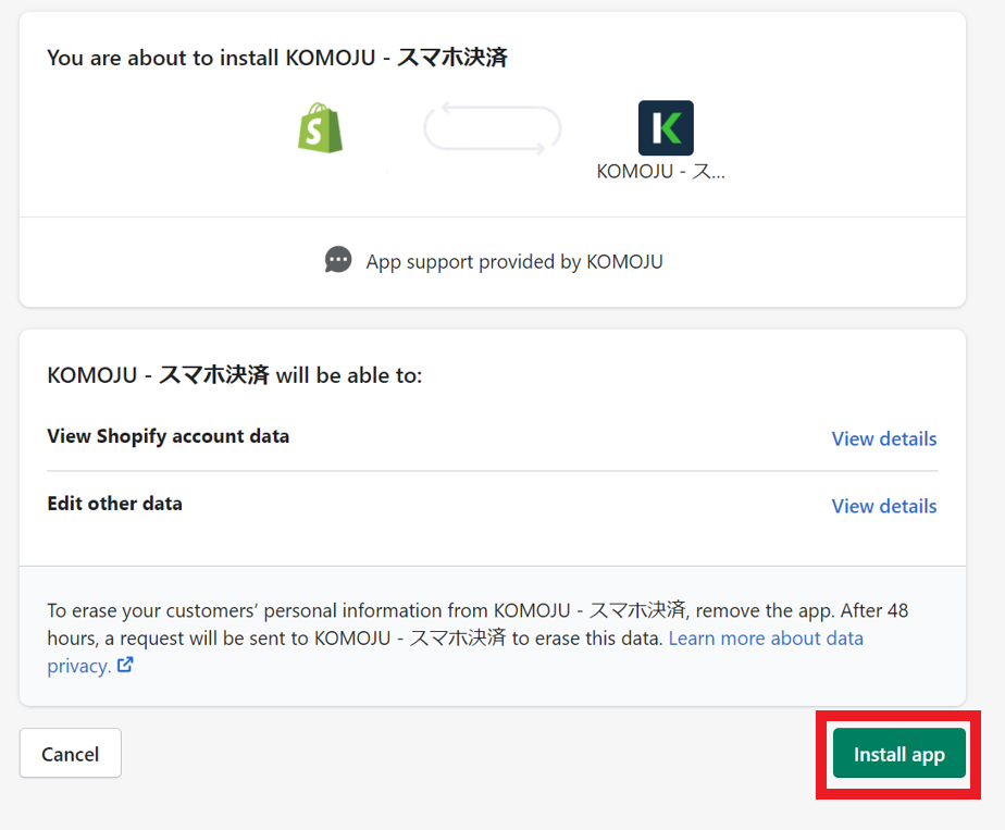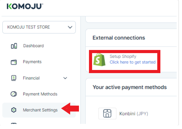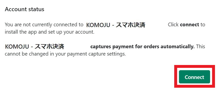 * If you download the app directly from the "Shopify app store", it may not be linked to your KOMOJU account. If you have multiple accounts, please be sure to follow the steps below for each account.