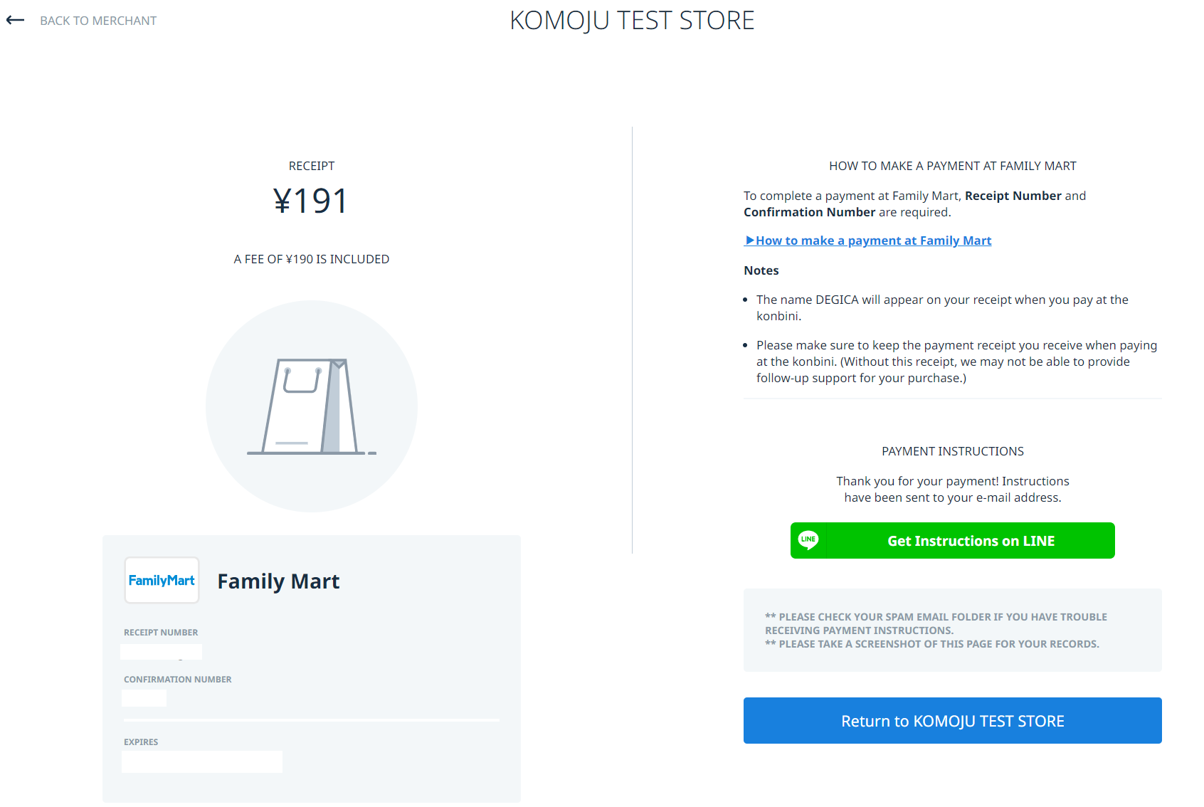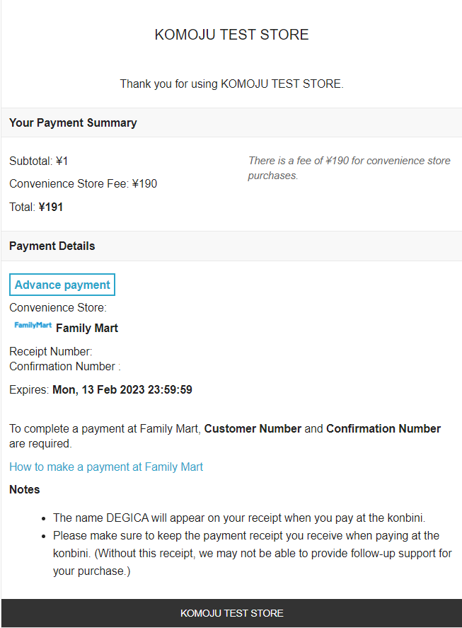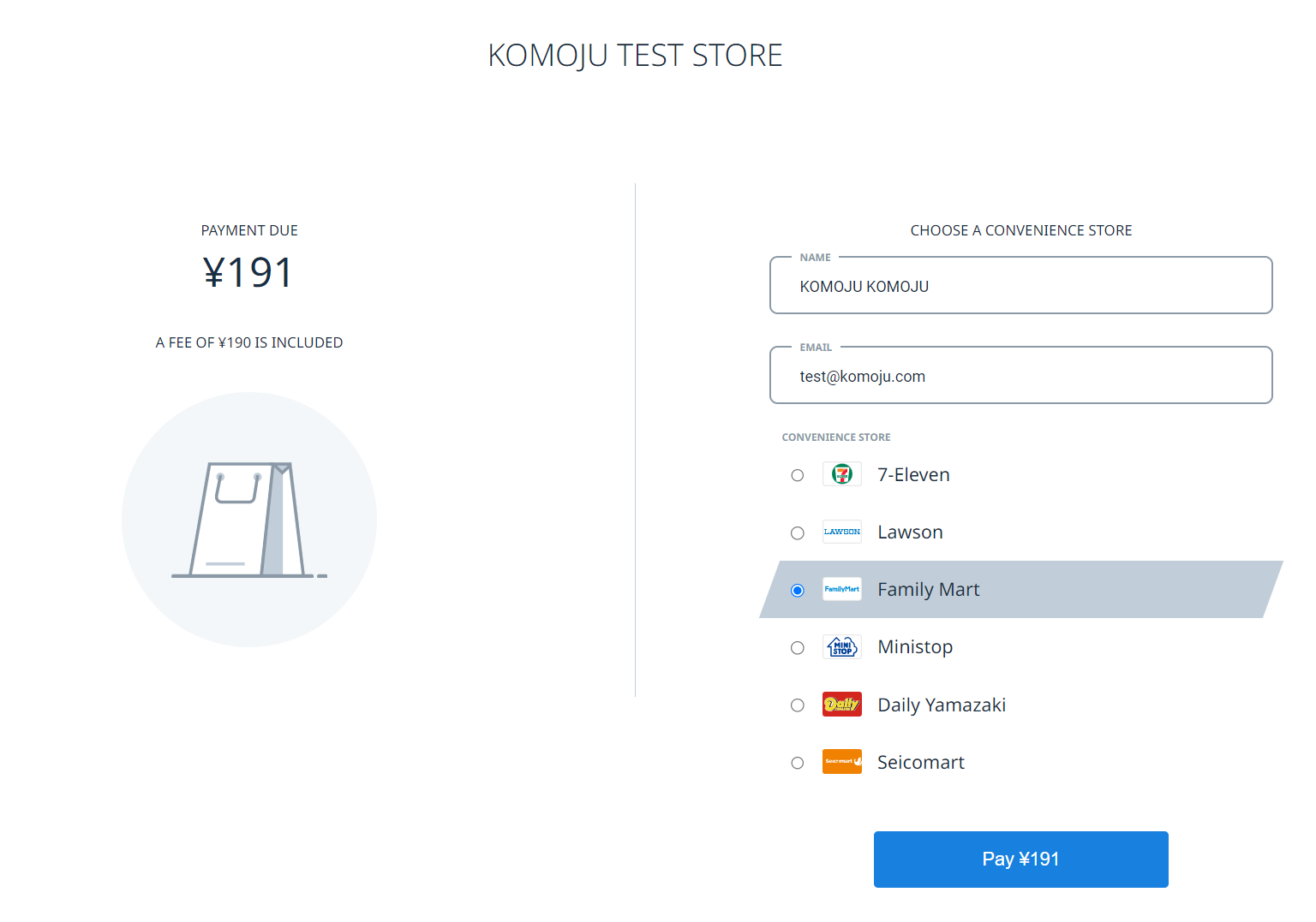 Select KOMOJU Convenience Store ⇒ You will be redirected to the KOMOJU payment page.