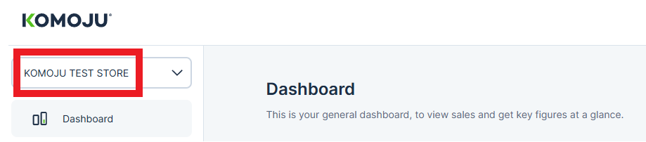 When you log in to the KOMOJU administration page, the KOMOJU account name is displayed in the upper left corner (see red box below) .