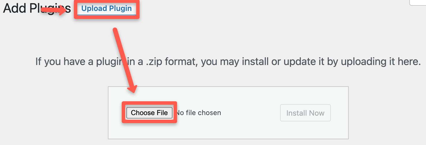 Click on ’Upload Plug-in’ ⇒ and then click 'Choose File'.
