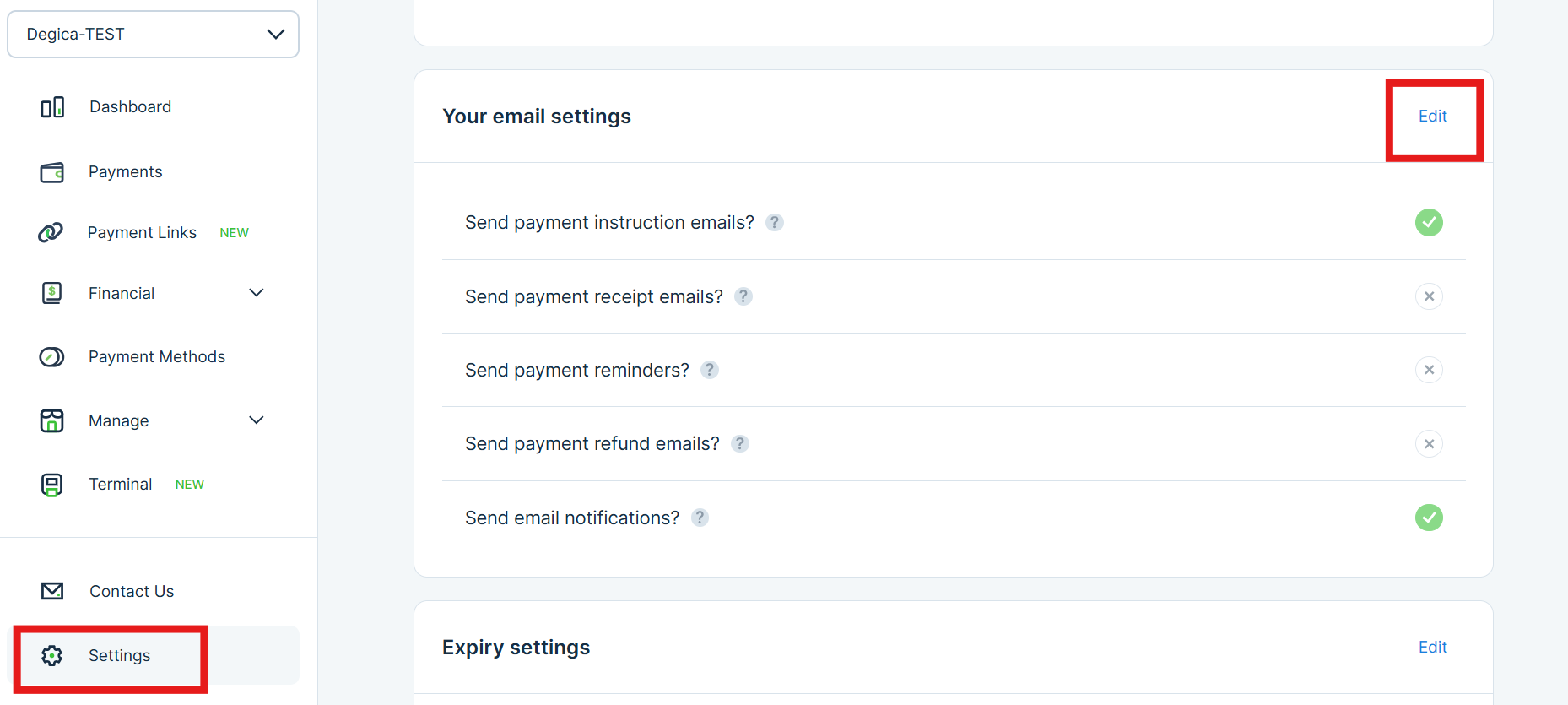 1. Select Settings > Click 'Edit'