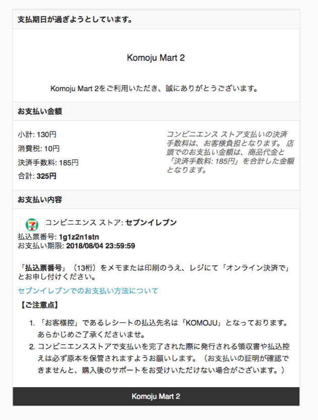 By enabling the email notification feature, KOMOJU will send a email notification to your customer's registered email address.