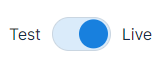 Once you accept the Service Agreement, you will be able to switch between Test mode and Live mode as shown below.