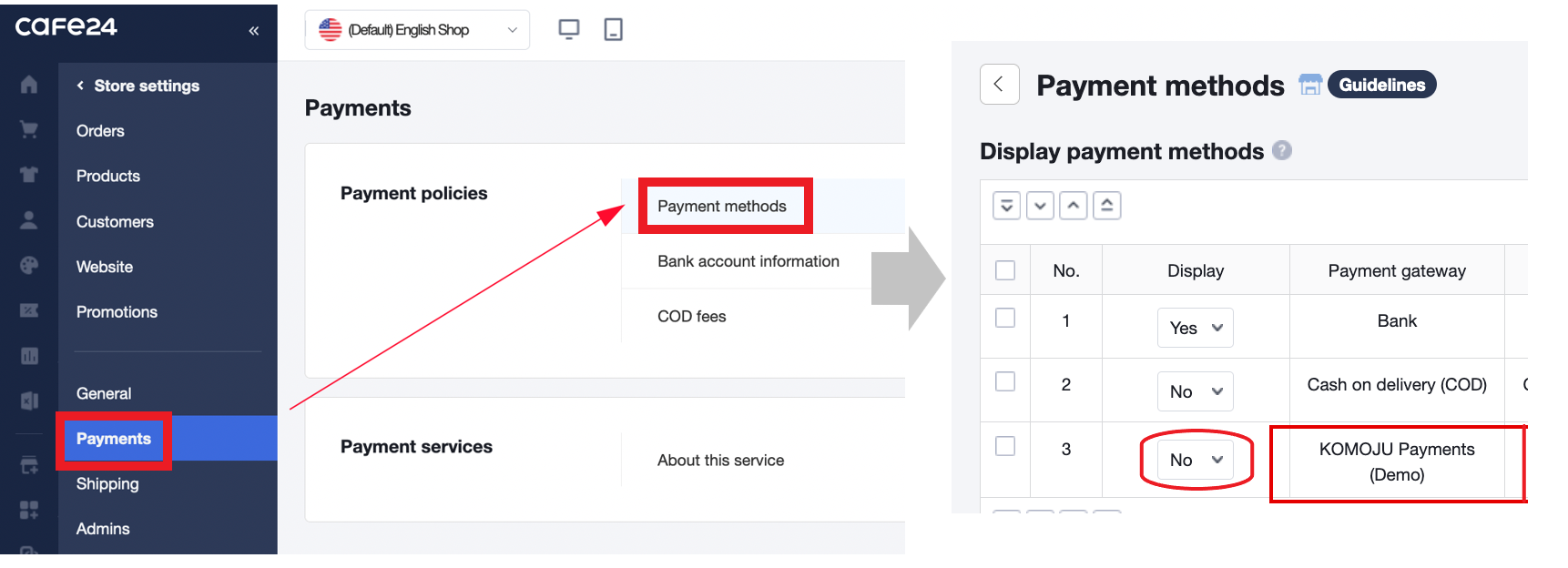 After the review completes, you will need to set up payment for Cafe24 in order to use Komoju in Live mode.