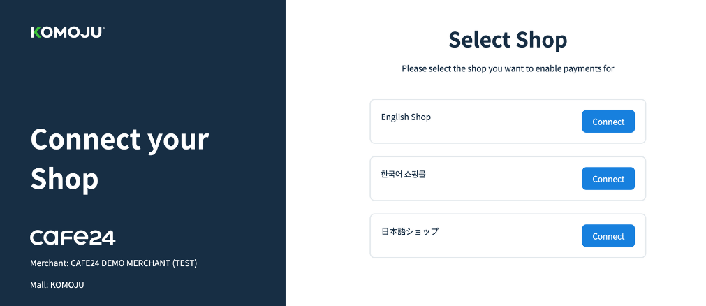 Please note that only one KOMOJU account can be connected to one Cafe24 account.