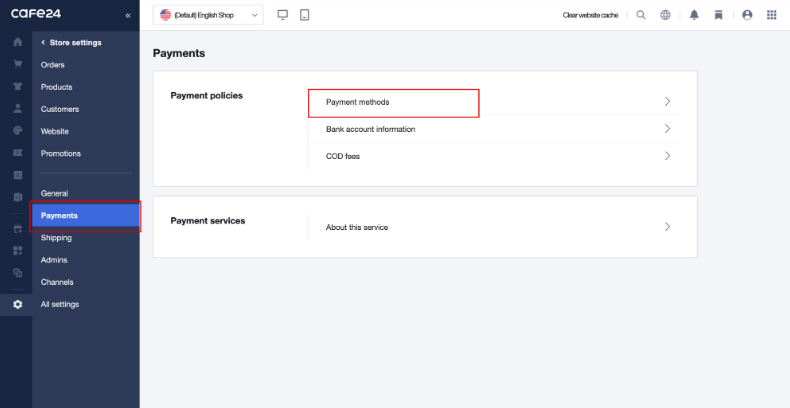 *The payment methods will be displayed on your selected Cafe24 shop in the language supported for the shop.