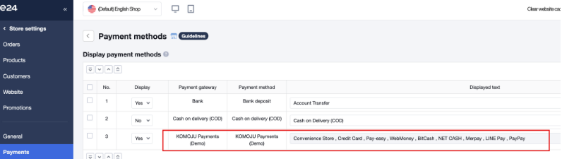 You can confirm that a KOMOJU payment gateway and your supported payment methods are added your chosen shop with the following step.