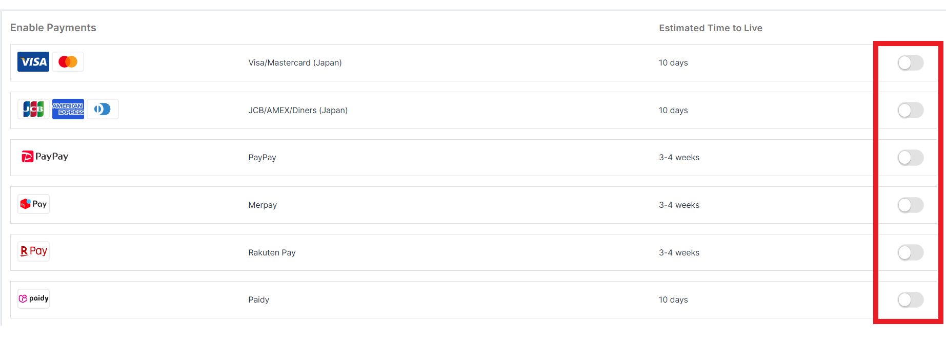 If you would like to apply for additional payment methods, please request as follows.