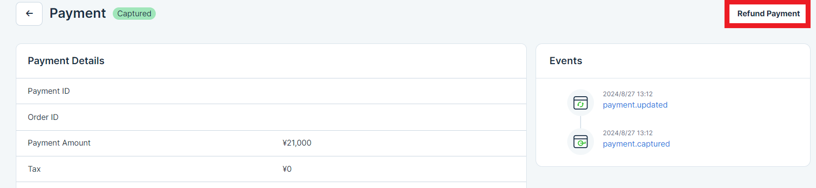 If you want to refund via KOMOJU for a transaction that has been settled with a credit card / Smartphone payments / Paidy / Carrier billing / Rakuten Pay / Prepaid Cards / auPay / d Payment, please follow the procedure below.