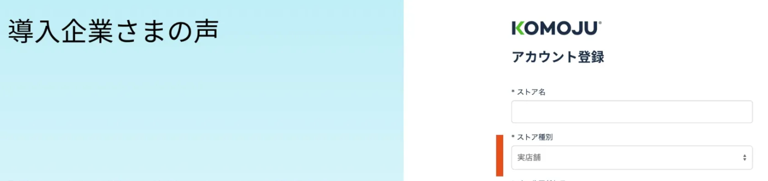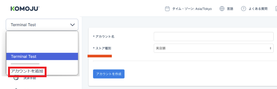 ※Komojuアカウントをすでに作成されてあり、同一ユーザーが新たにアカウントを作成される場合、こちらよりログイン頂き以下の手順でアカウントの追加をお進みください。