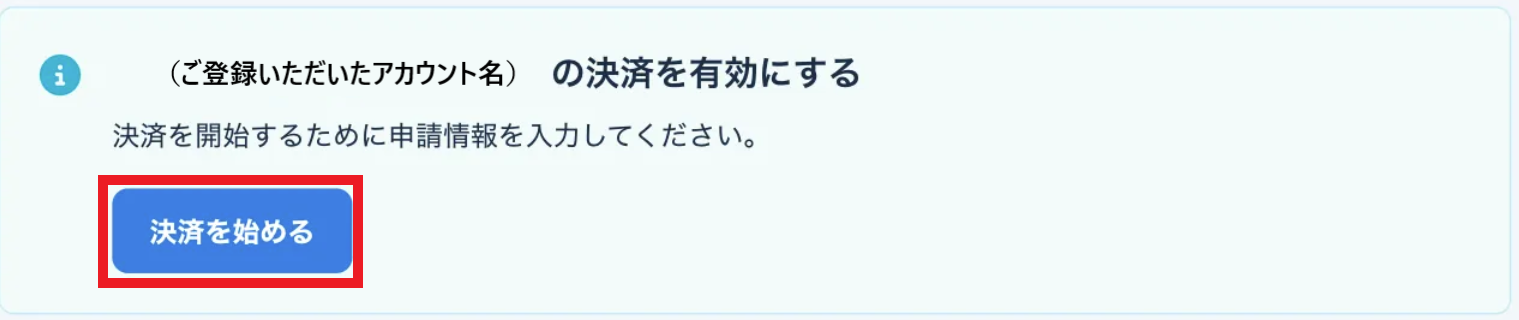 - KOMOJUの管理画面にログインし「決済を始める」をクリックいただくと、Liveモード(商用環境)の申請フォームが表示されますので、申請をお進みください。