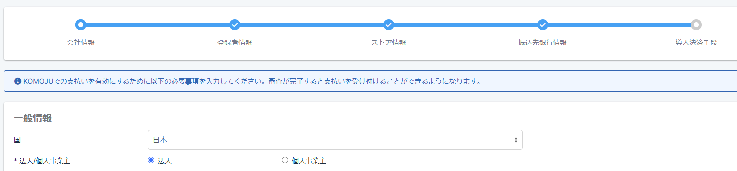 ※申請フォーム内の【ストア情報】ページにて「KOMOJUの決済端末」にチェックを入れ、申請をお進みください。