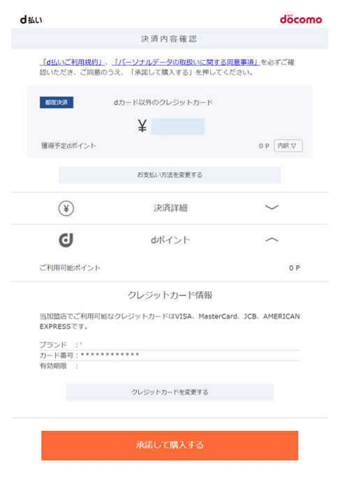 【d払い】決済時の画面遷移例 Aaron Clark 2025年06月30日 00:18 更新 【1】「d払い」を選択し、「今すぐ支払う」をクリック。 【2】d払いアカウントへのログインと本人確認を行う。 【3】d払い画面にリダイレクトしますので、「承諾をして購入する」をクリックし支払いを完了させる。 関連 Shopify コメント 0件のコメント サインインしてコメントを残してください。