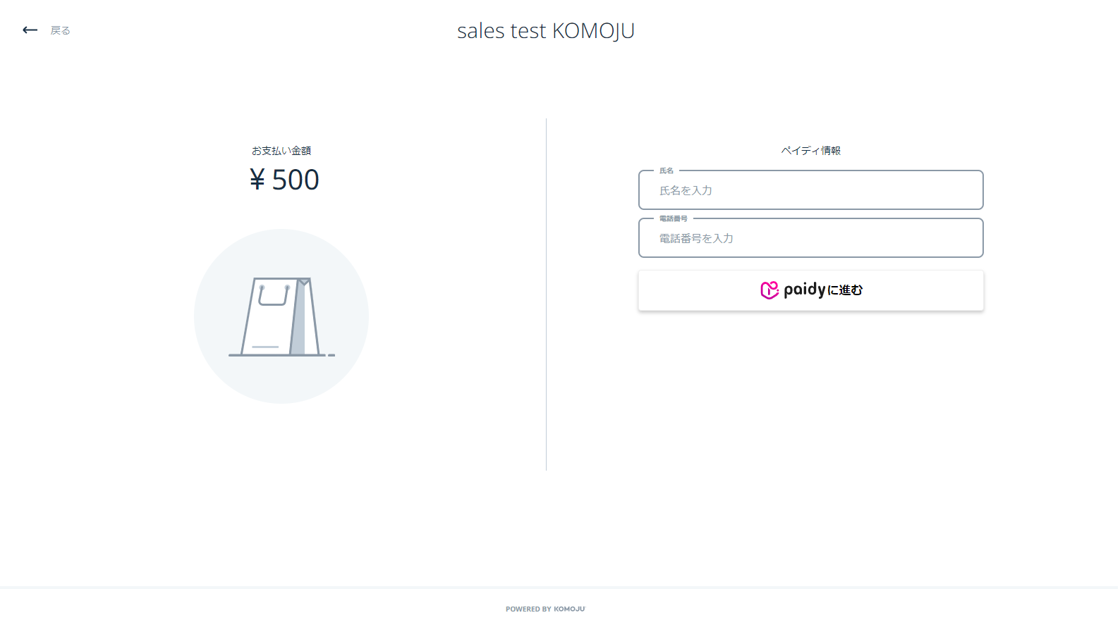 【2】ペイディに登録済みの「氏名」と「電話番号」を入力し、「paidyに進む」ボタンをクリック。
