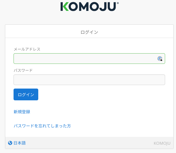 KOMOJUのログイン画面へ遷移するのでログインしてください。