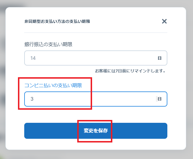 【例】コンビニの支払い期限を3日で設定した場合。