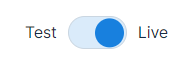 内容をご確認、同意いただき管理画面まで進んでいただきますと、以下のようにTestモードとLiveモードの切り替えができるようになります。(こちらが表示されていない場合は審査と契約が完了しておりません。)