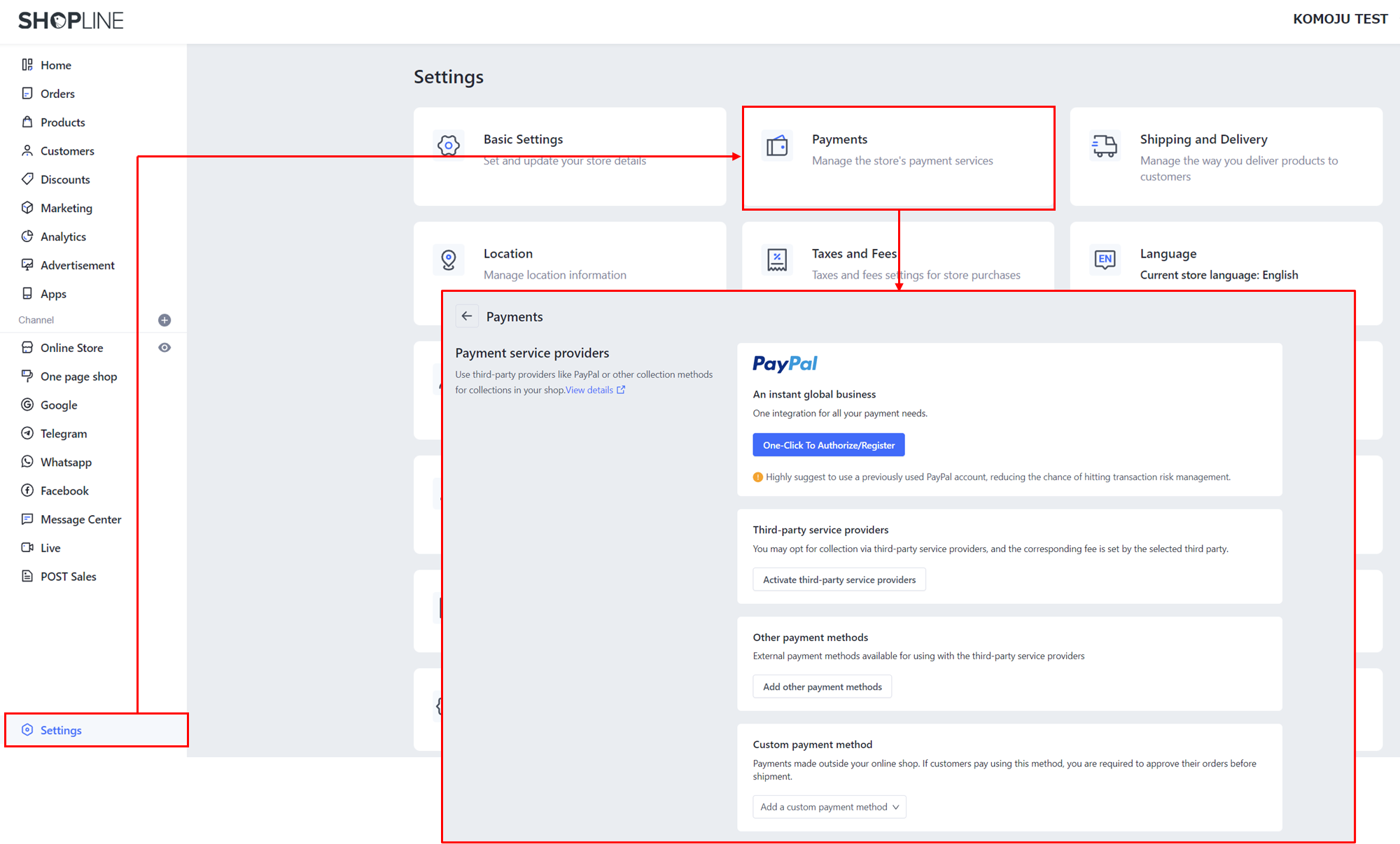 STEP 3. SHOPLINEにKOMOJUを接続する