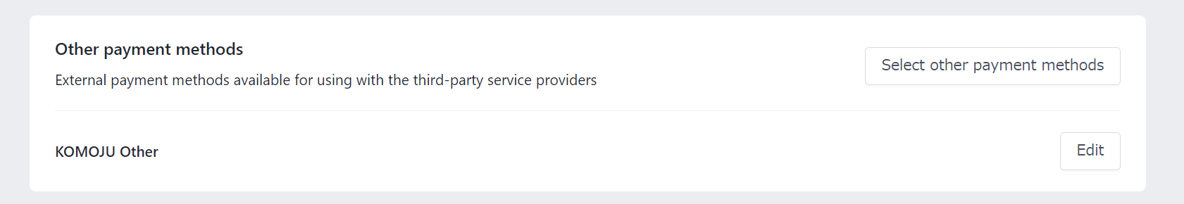 「Other payment methods」の下に「KOMOJU Other」と表示されていれば、KOMOJU設定完了となります。